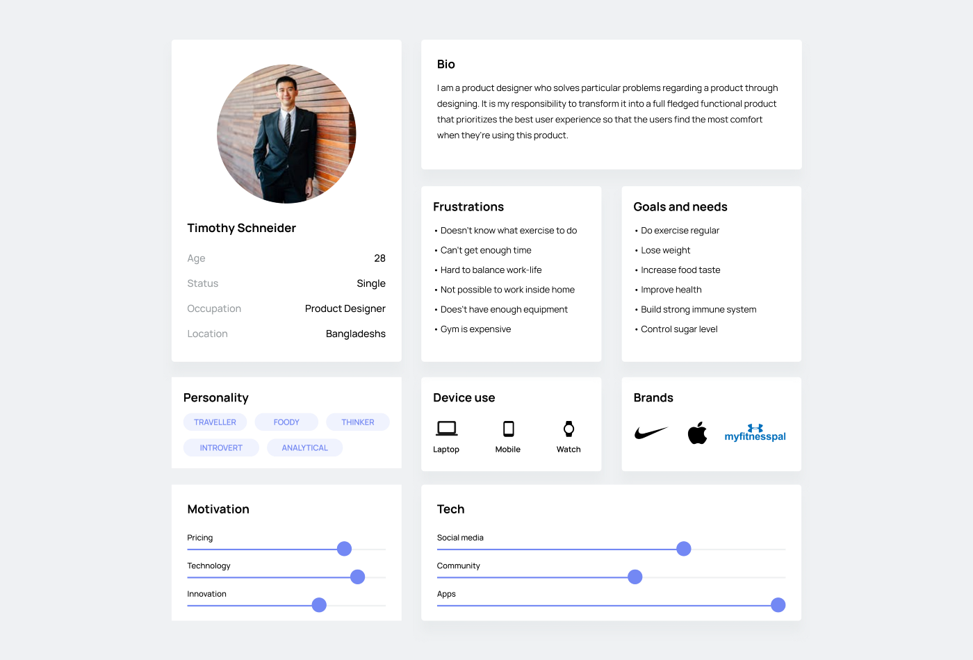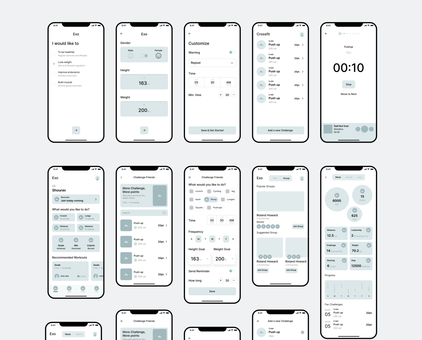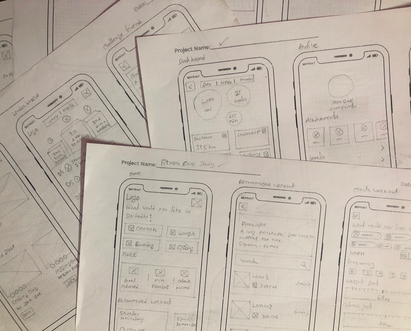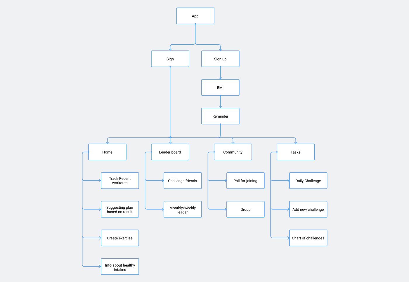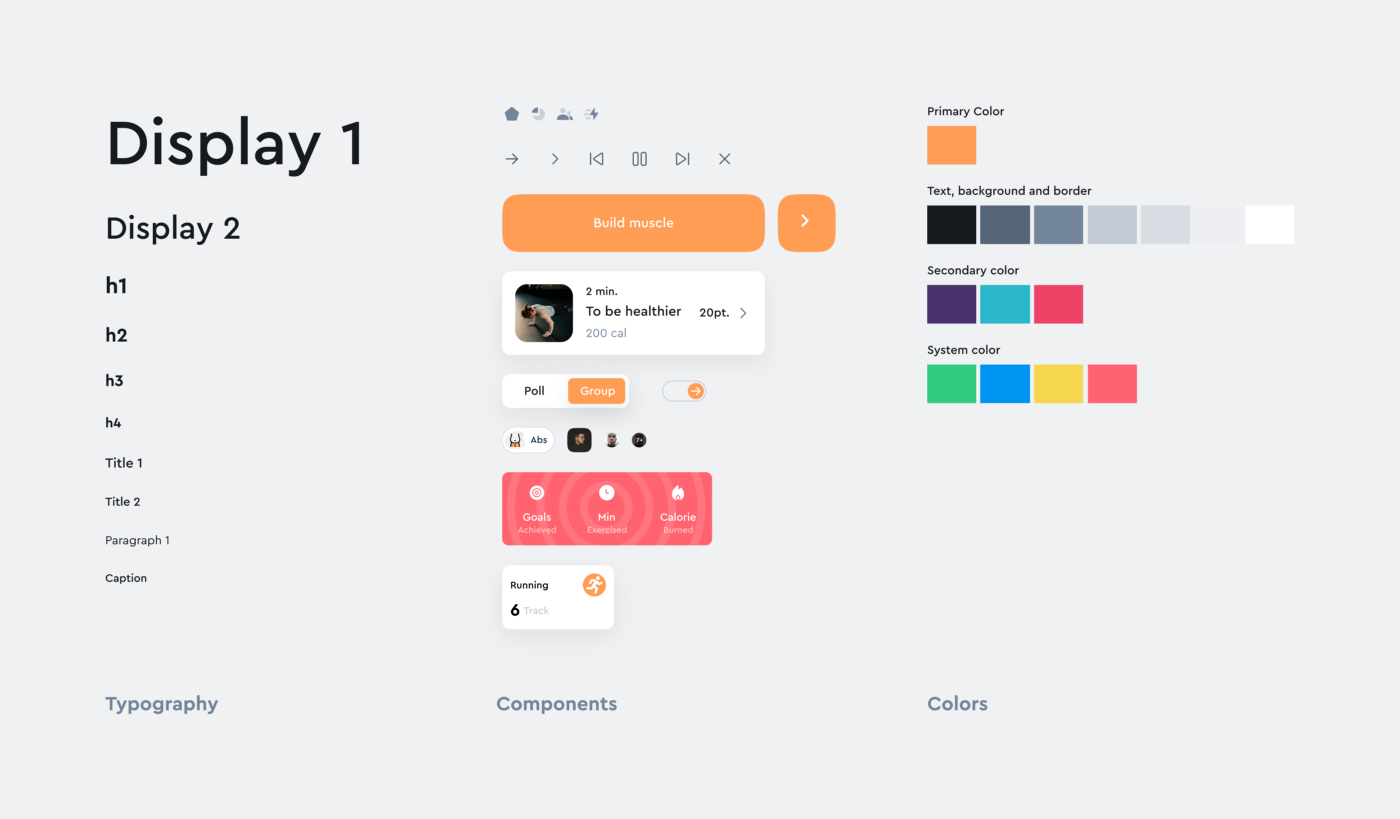 This is the visual design stage with a product style guide and design system for the end product. By using and gathering all of these, I eventually analyze and split tasks and flows for users to achieve their desired goals. For instance: create a personalized fitness program.