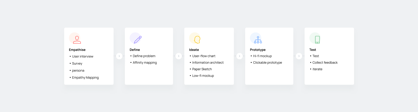 Design thinking is a non-linear process so it will be continuously developed by experimenting, Researching and iterate each stage to find out the best possible solution.