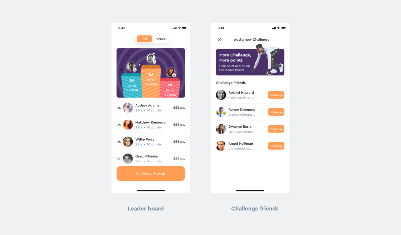 This leader board was designed for gamification. It urges them to be on top by challenging each other and meeting challenges and goals.